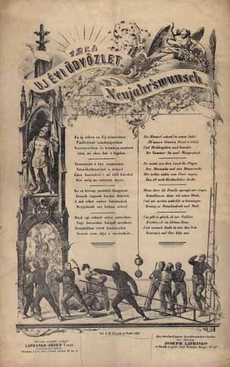 Kéményseprűk újévi üdvözlete 1854-ből. A tűzvészektűl különösen fenyegetett városokban Szent Flórián lett a védűszentje azoknak a mesterségeknek, ahol tőzzel kellett bánni: őt tisztelték a tűzoltást is végző kéményseprűk, téglaégetők, húsfüstölők. A szentet mindig csöbörrel a kezében ábrázolták, ezért aztán a pesti serfőzők céhe is őt választotta patrónusául.
