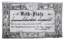 Az Orczy-ház reformirányzatú gyülekezetébe szóló, 1845-ben kiállított templomi helyjegy.
