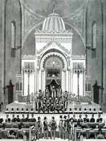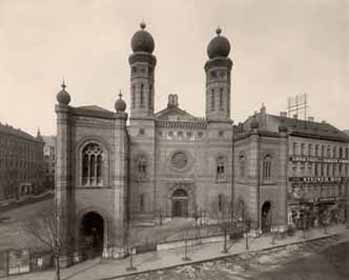 Az 1859-ben felépült Dohány utcai neológ zsinagóga a századelőn. Orientális-bizánci stílusa a zsidóság eredetére utal, az újdonságnak számító kettős torony azonban a keresztény templomokhoz közelíti az épület külső képét. A hitszónoklatok jiddis helyett németül és magyarul hangzottak el. Falai között gyászszertartásokat tartottak Teleki László, Deák Ferenc és Kossuth Lajos halálakor, és rendre megünnepelték a magyar nemzet sorsfordulóinak emléknapjait.